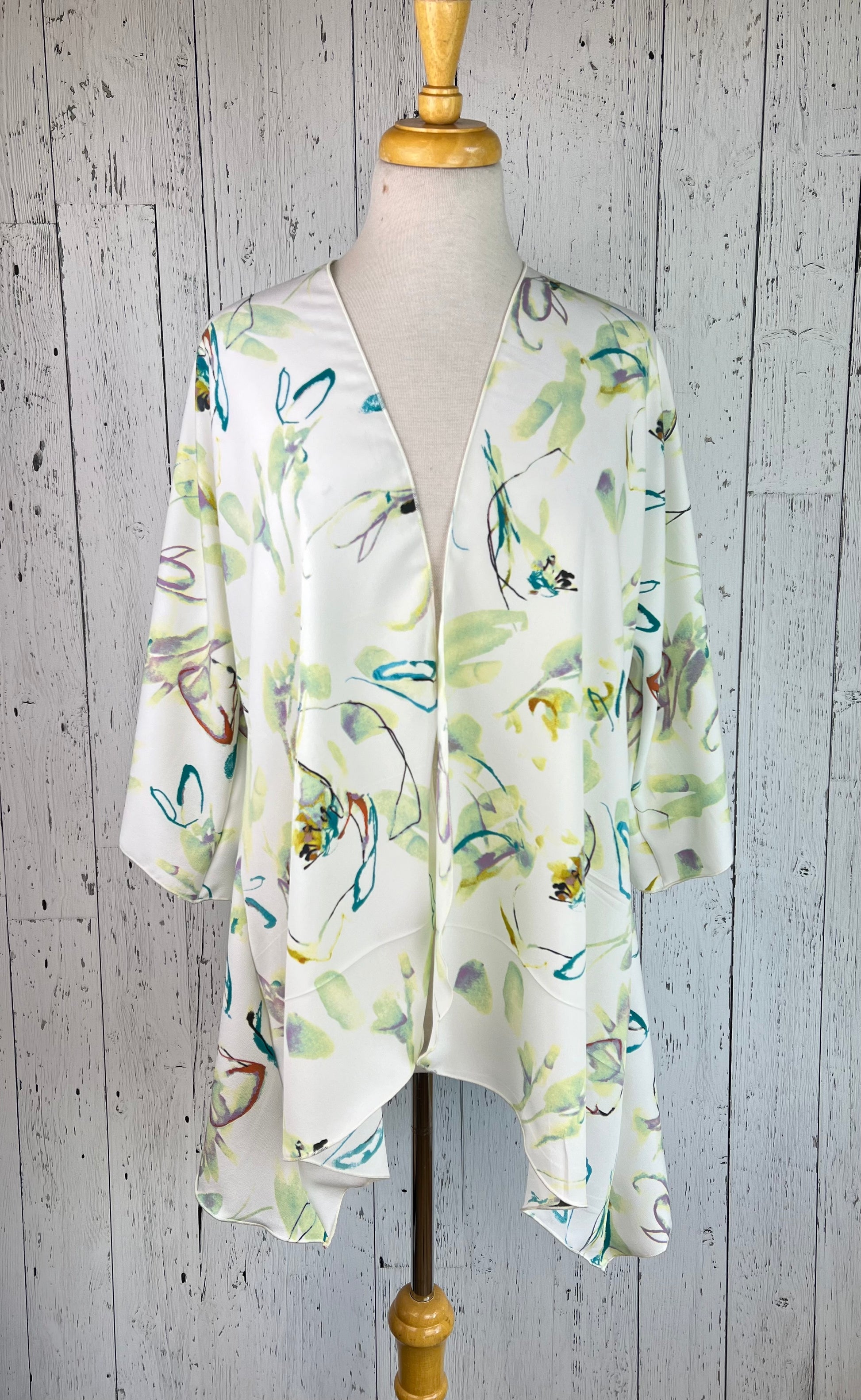Green Watercolour Floral Sleeved Kimono Various Lengths