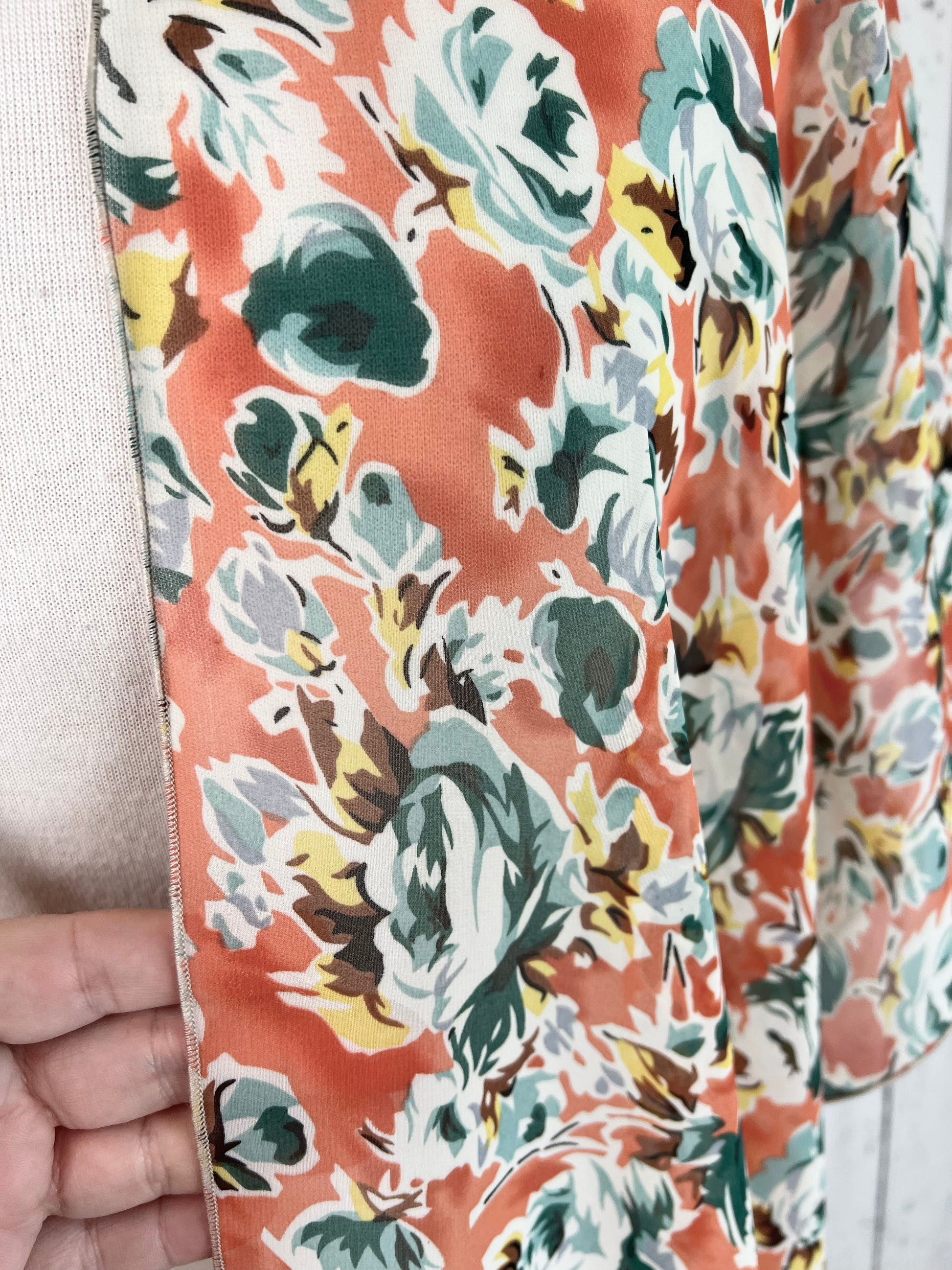 Orange & Teal Floral Sleeved Kimono (Various Lengths )