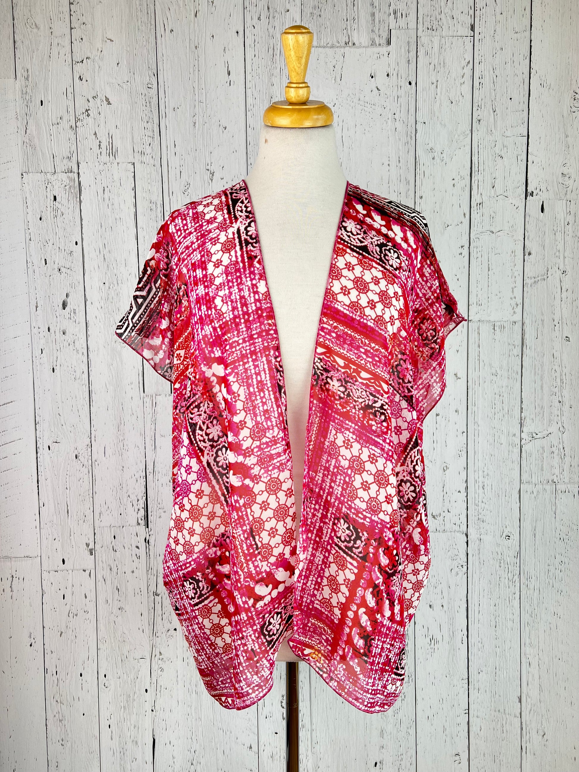 lightweight chiffon Kimono. Short Sleeve, is from width of Kimono and will sit approx half way on upper arm.