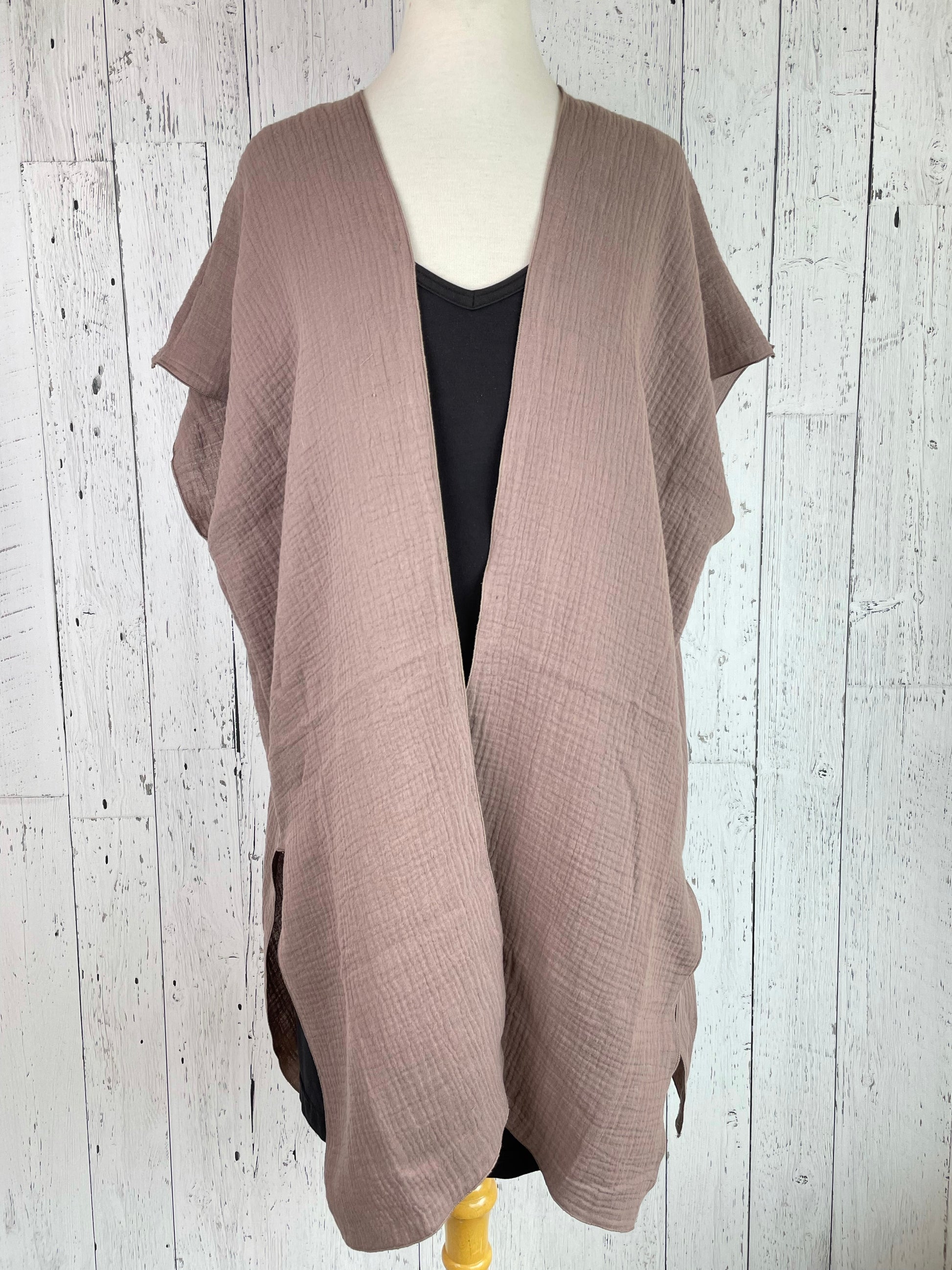 Taupe Organic Cotton Short Sleeve Kimono